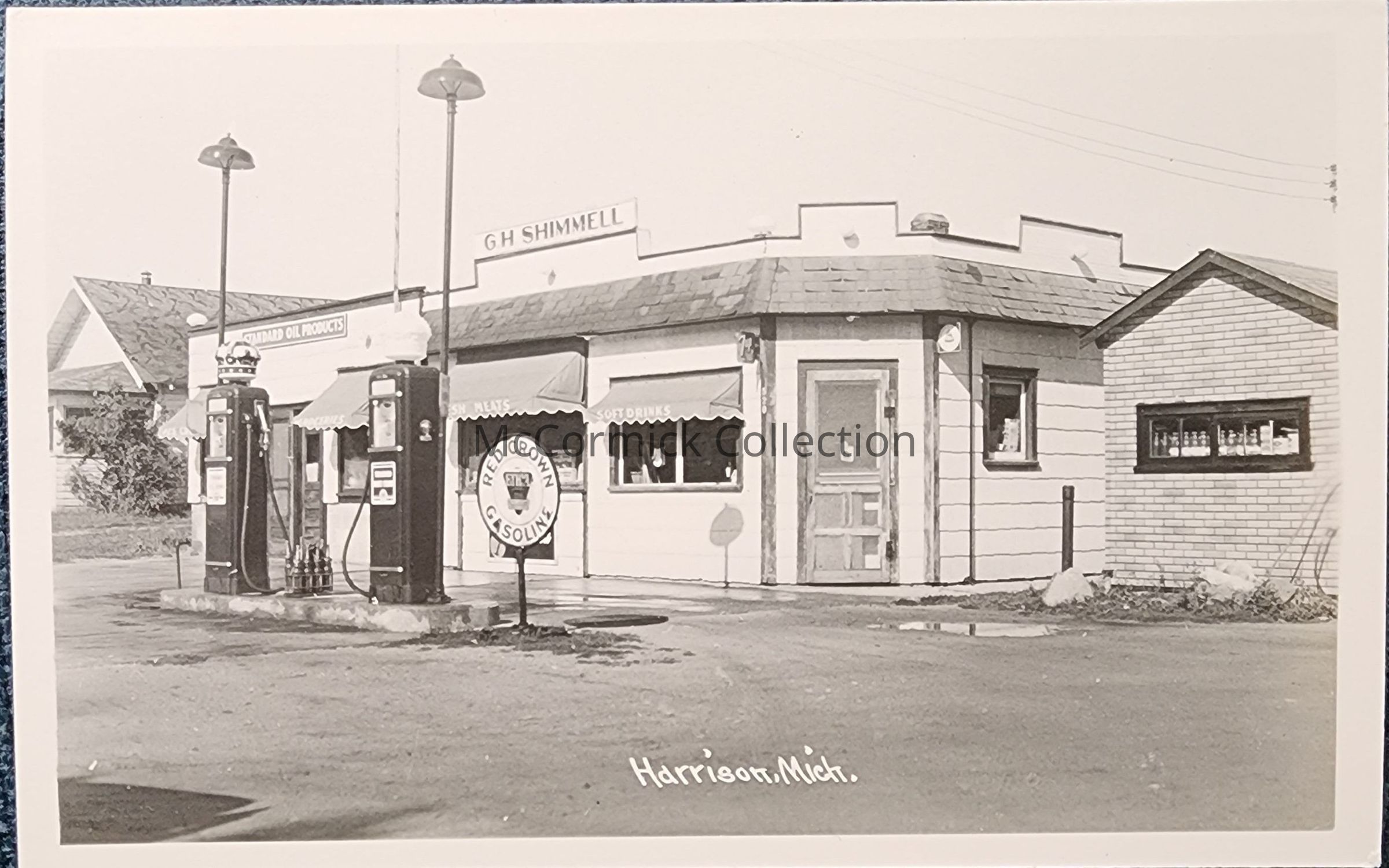 G.H. Shimmell Gasoline Station, Harrison, Mich. RPPC