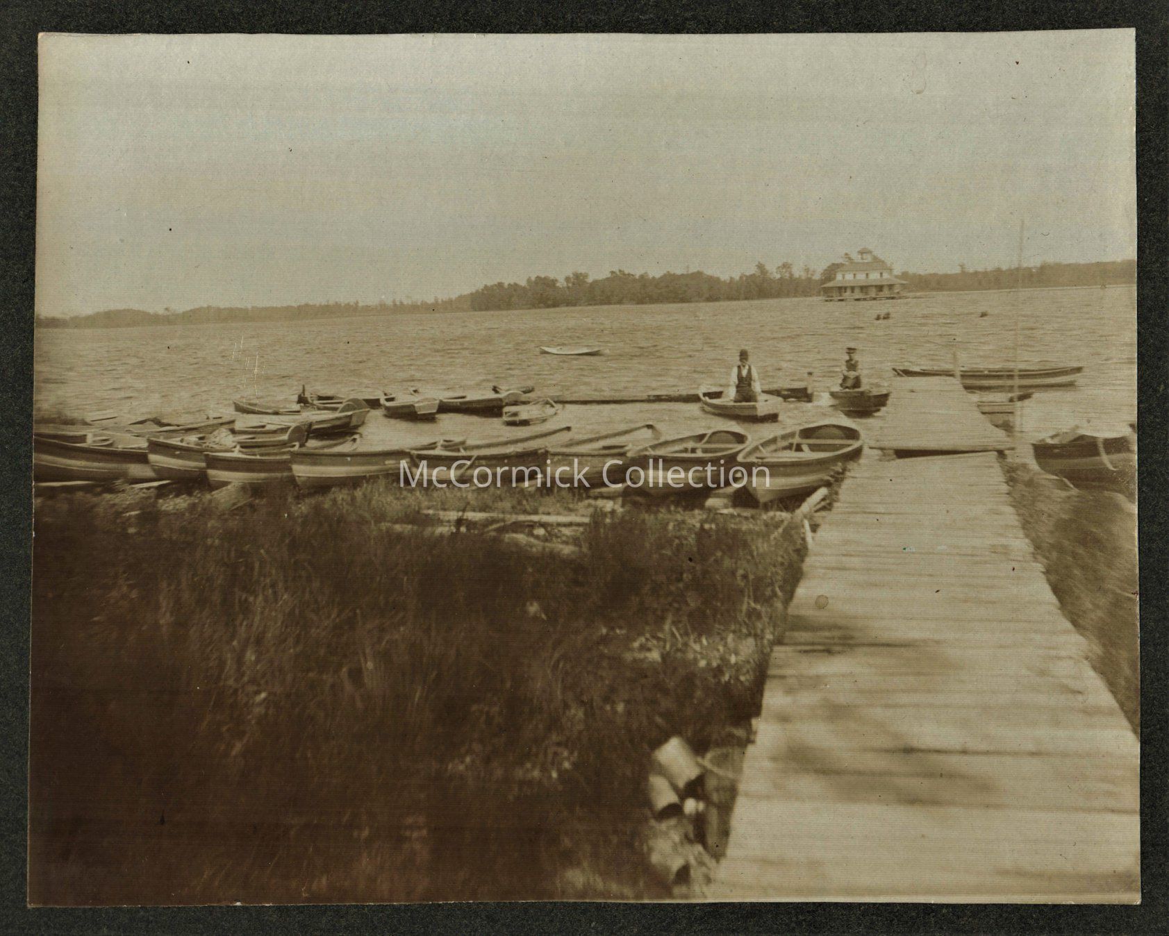 Card mounted photograph of Pine Lake showing the Izzer. Taken by amateur Lansing photographer Edward Abbey.