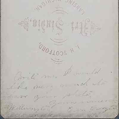 Written on the back: "Write me. I would very much like to have your photo. Yours sincerely. Eva Coryell, Williamston."Made/Created
