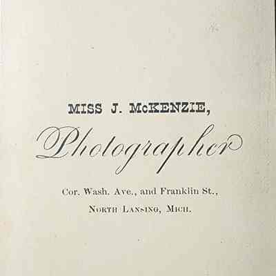 Carte de visite photograph of an unidentified child named Winnie by Lansing photographer Miss J. McKenzie. Hand tinted.