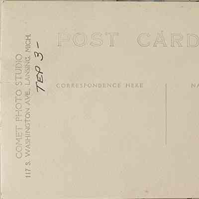 Real photo postcard of an unidentified man by Lansing photographer Comet Studio.