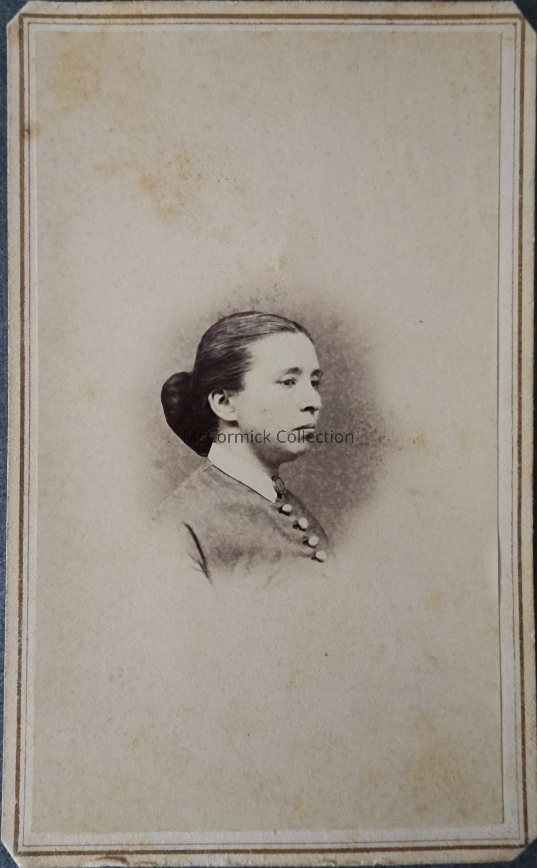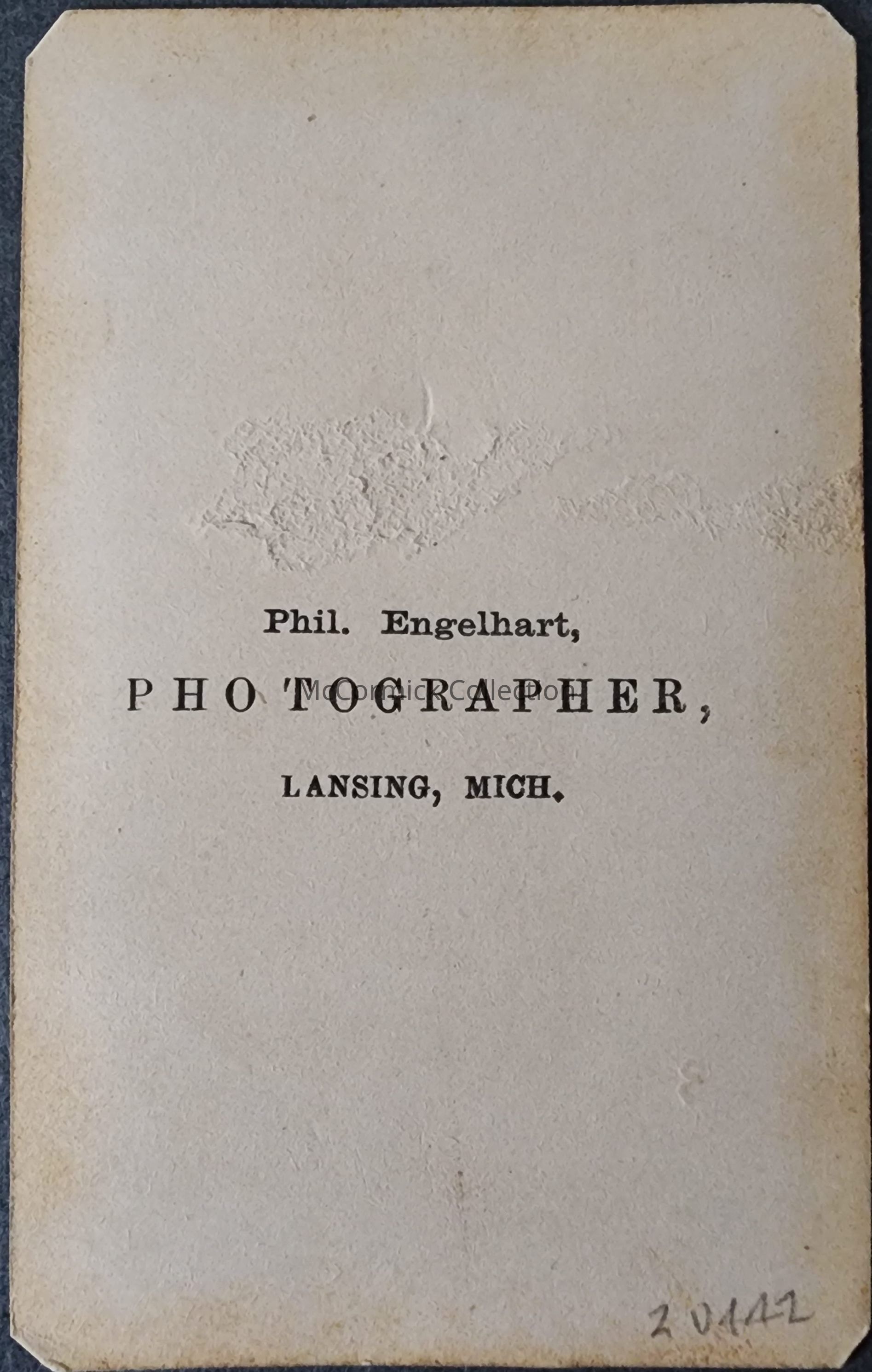 Carte de visite photograph of an unidentified woman by Lansing photographer Engelhart, circa 1859-1876.
