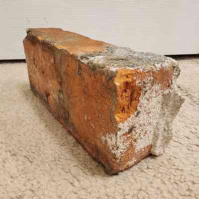 Brick recovered from the demolition of the Richard Glaister House on Walnut Street in Lansing, Michigan, on July 8, 2025. The home was demolished by the City Rescue Mission. Glaister was the master stone mason for the construction of the Michigan State Capitol, 1872-78. His home was built in 1876 and was listed on the National Register of Historic Sites.