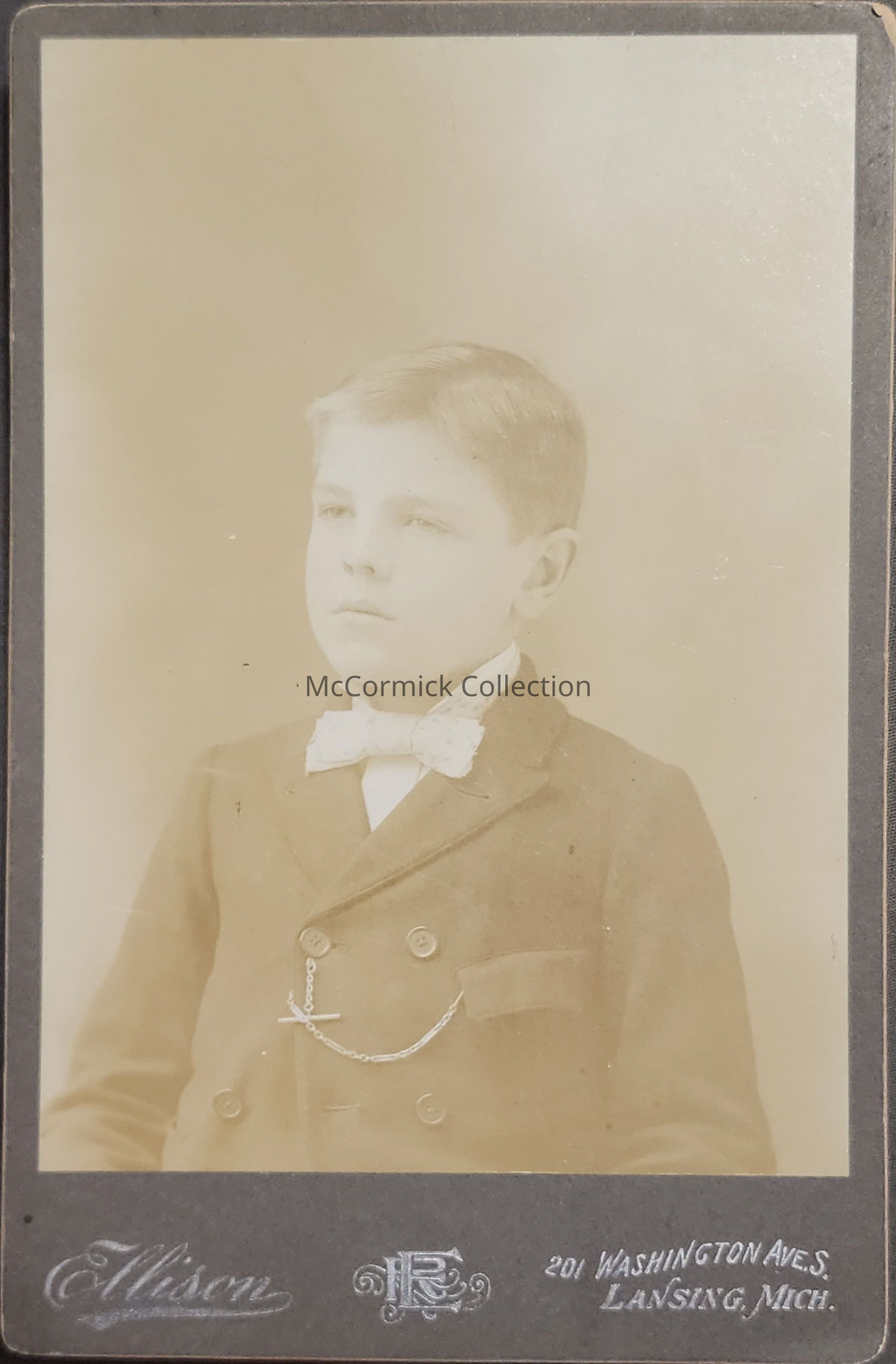 Cabinet card photograph of an unidentified child by Lansing photographer Ralph Ellison.