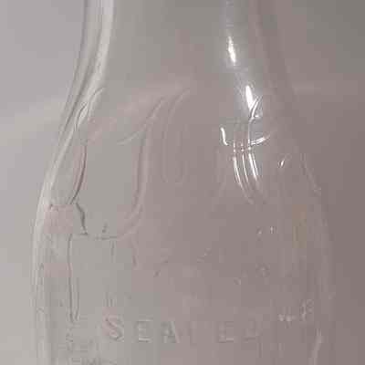 Standard embossed pint bottle with full script logo from the Lansing Dairy Co. Has the LBCo. block letters on the back.