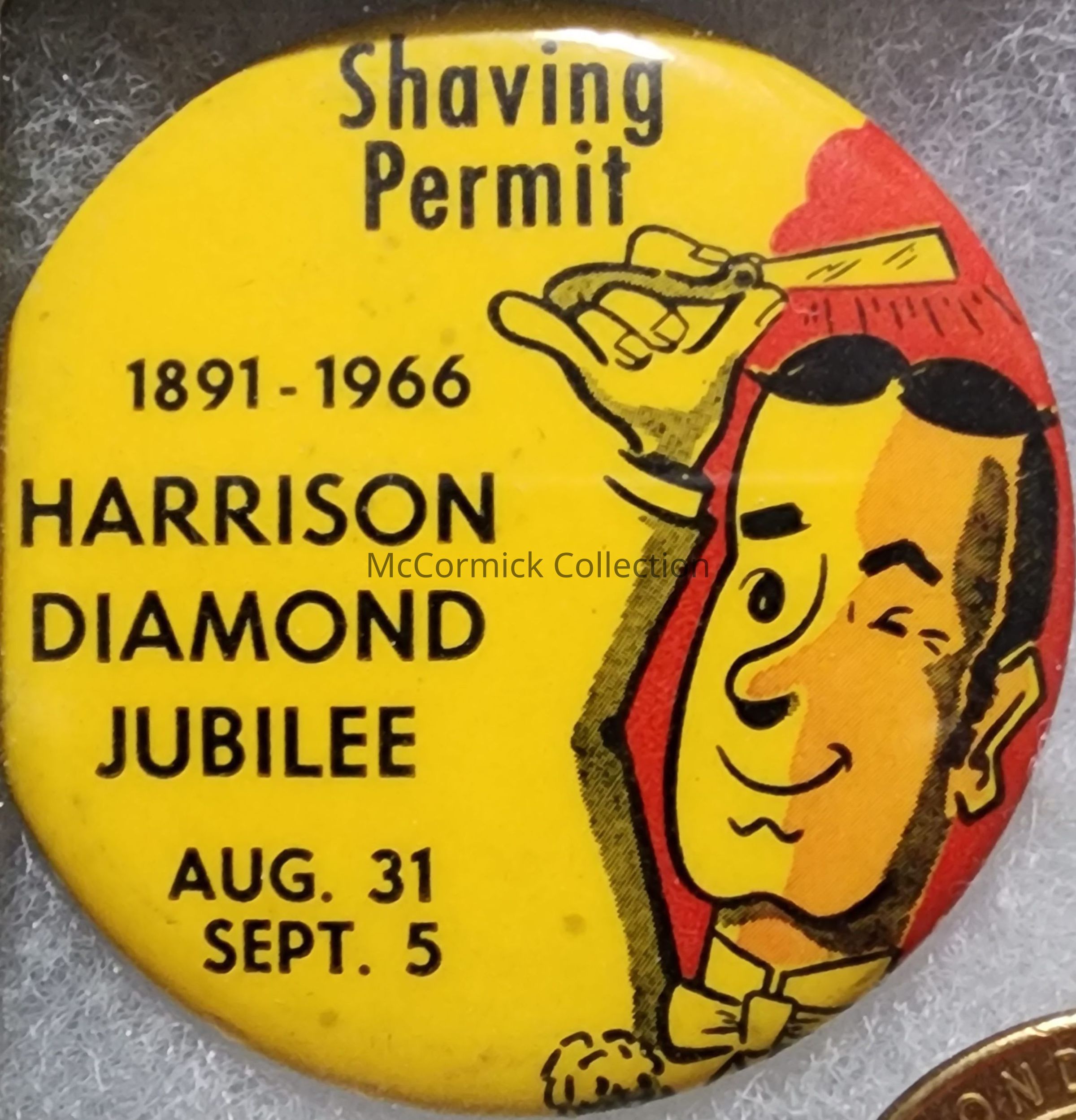 Shaving Permit Button from the 1966 Diamond Jubilee of Harrison, Clare County, Michigan.
