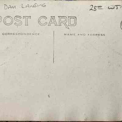 Real photo postcard of a closeup of the Moores Park Dam in Lansing, Michigan. Postally unused.