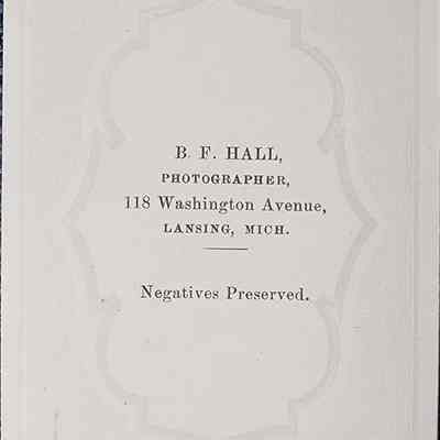 Portrait photograph of an unidentified man by Lansing photographer Hall, circa 1860s. Gift of Eric Satterlee.
