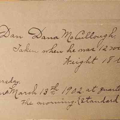 Card mounted photograph of an infant Dan Dana McCullough by Lansing photographer Ellison. Dated 1902.