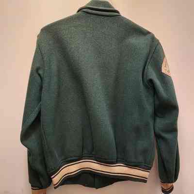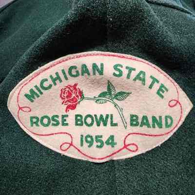 An original Michigan State Band Jacket with pre-1955 MSC Marching Band patch. Also has the first Rose Bowl Band patch on the right sleeve from the 1954 Rose Bowl. Made by champion, size 38.