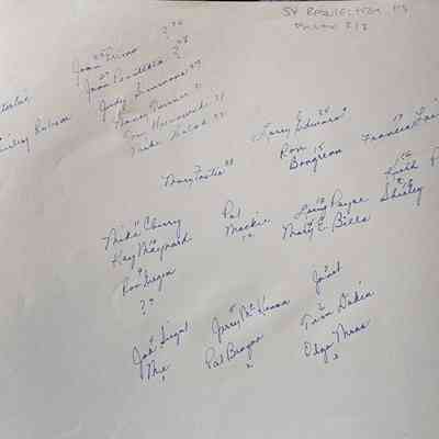 Photographic print of student dates for a dance at Resurrection catholic high school in Lansing, Michigan. Identified on back. Taken on the porch of a home with the address 307.
