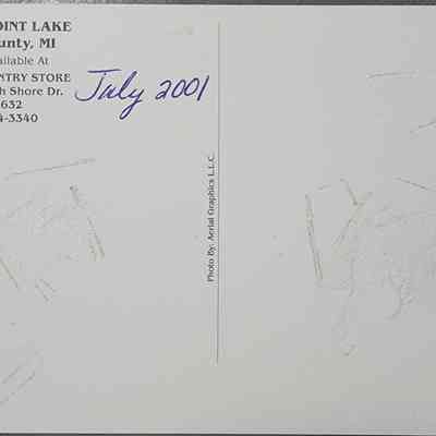 Postcard of an aerial view of Eight Point Lake in Lake, Michigan, circa 2001. Purchased at Bev's Country Store.