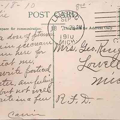 Postcard of the Grand Trunk Depot in Lansing, Michigan, with REO Motors in the background. Postally used. Postmarked 1910 Lansing.