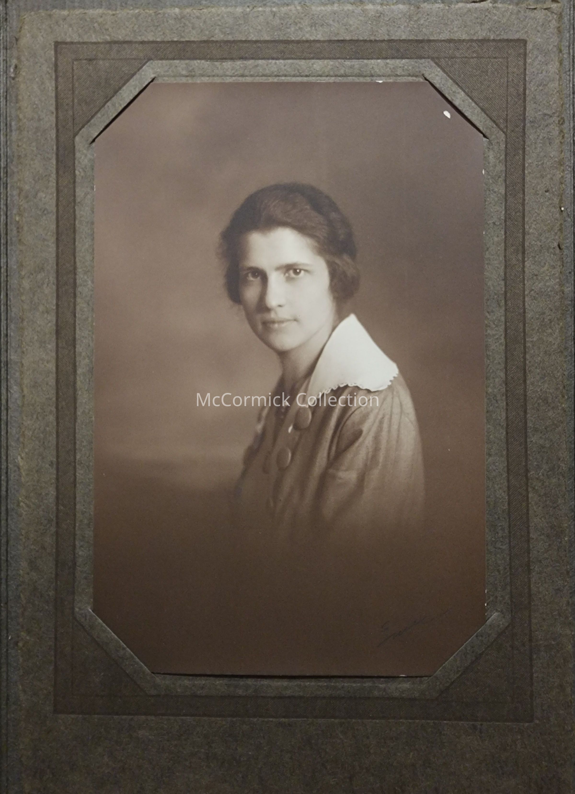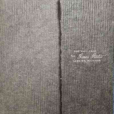 Folder frame mounted photograph of an unidentified woman by Lansing photographer Imes.