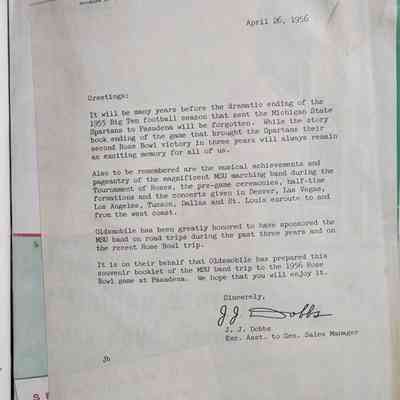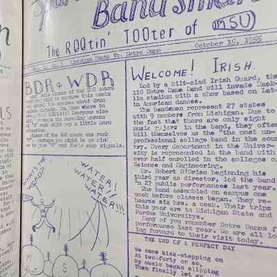 An archive of Spartan Marching Band ephemera relating to drill charts, student newspapers titled the "Spartan Bandsman," clippings, programs, music, letters, and more. Covering the years 1955 to 1959.