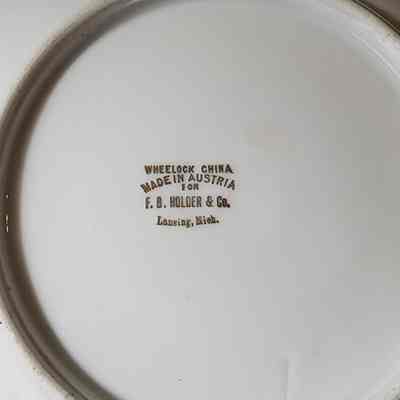 Ceramic Souvenir scalloped edge white floral plate of the Michigan State Capitol in Lansing. Wheelock China made in Austria for F.B. Holder of Lansing.