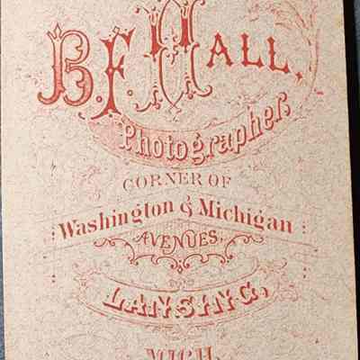 Carte de visite photograph of siblings Louisa, Ella, and Harry Holmes by Lansing photographer Hall.