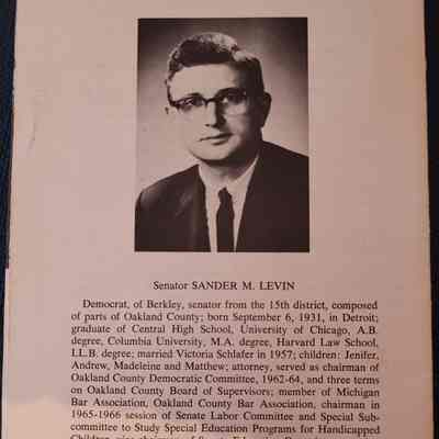 A booklet for visitors to the Michigan State Capitol distributed by State Senator Sander Levin, circa 1960s.