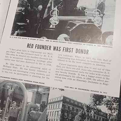15-page booklet highlighting Michigan State and REO connections for the Centennial of MSC in 1955.