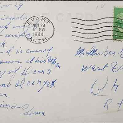 Real photo postcard of Eight Point Lake in Lake, Michigan (mislabeled as Evart). Postally used, 1944 Evart postmark. Addressed to Ohio.