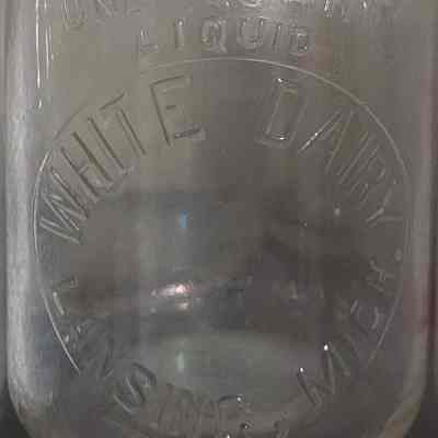 An embossed round tall neck quart with slug plate from the White Dairy of Lansing, Michigan.