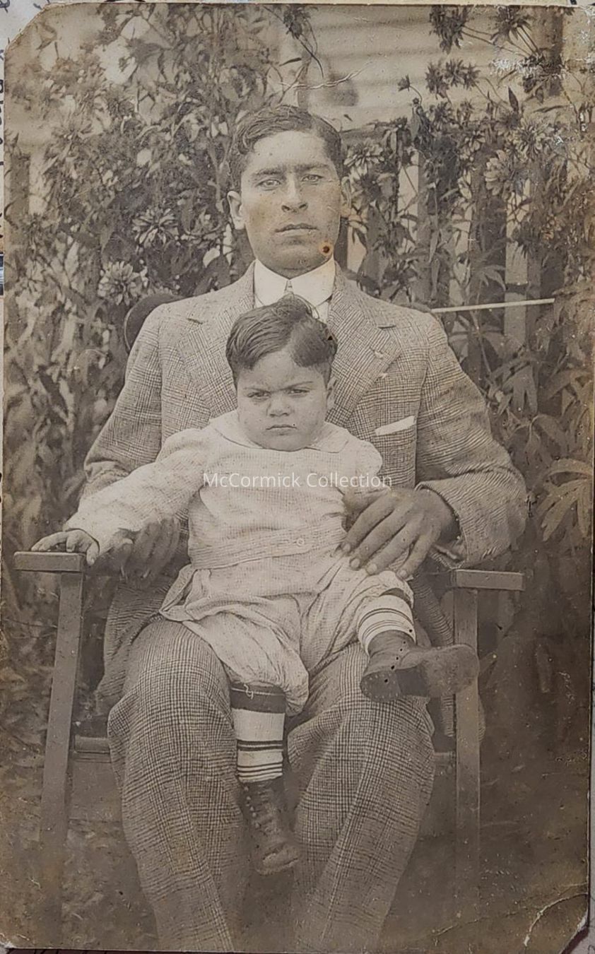 Real photo postcard of A.K. Haspany or Haspang and child on Isaac Street, Lansing, Michigan.