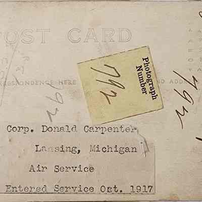 Real photo postcard of Corp. Donald Carpenter of Lansing, circa 1917.