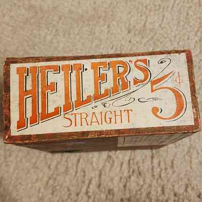 An antique advertising cigar box from Lansing, Michigan, by Heiler's Straight Five.