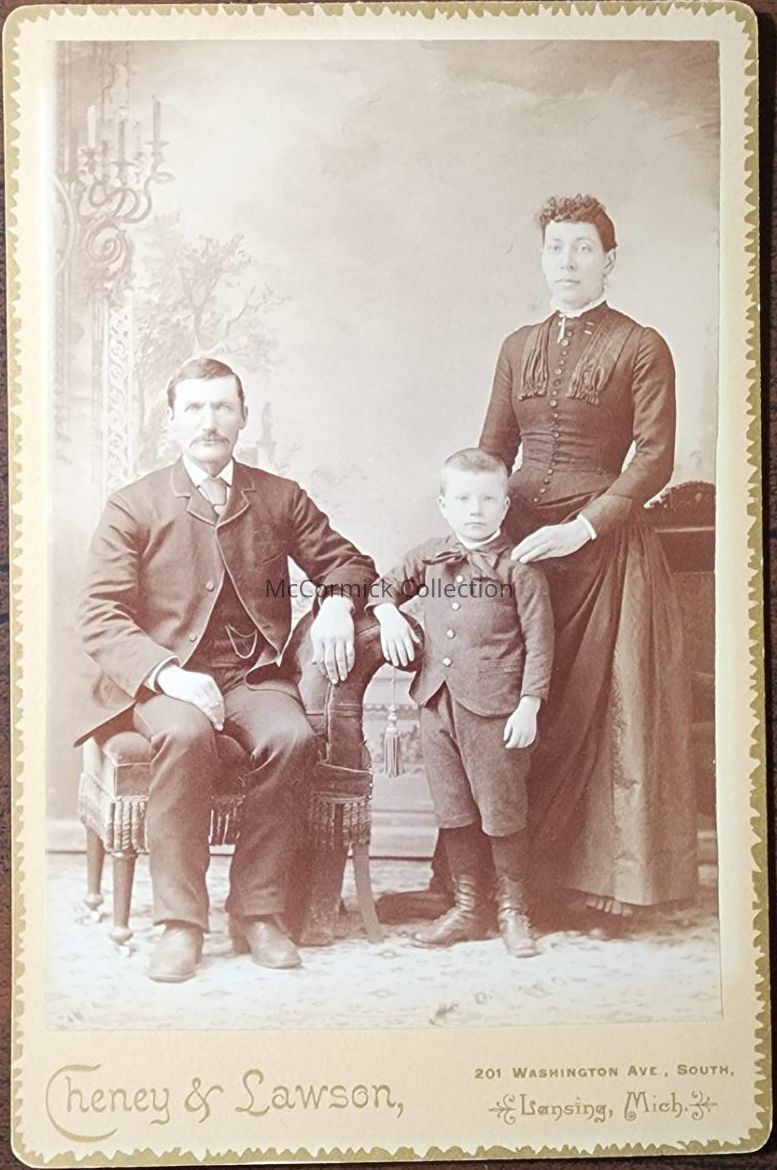 Cabinet card photograph of an unidentified family by Lansing photographer Cheney and Lawson.
