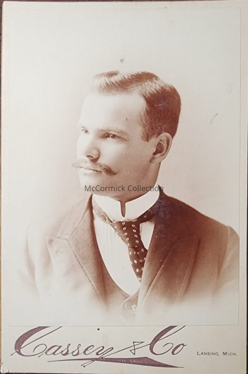 Cabinet card photograph of an unidentified man by Lansing photographer Cassey and Co.