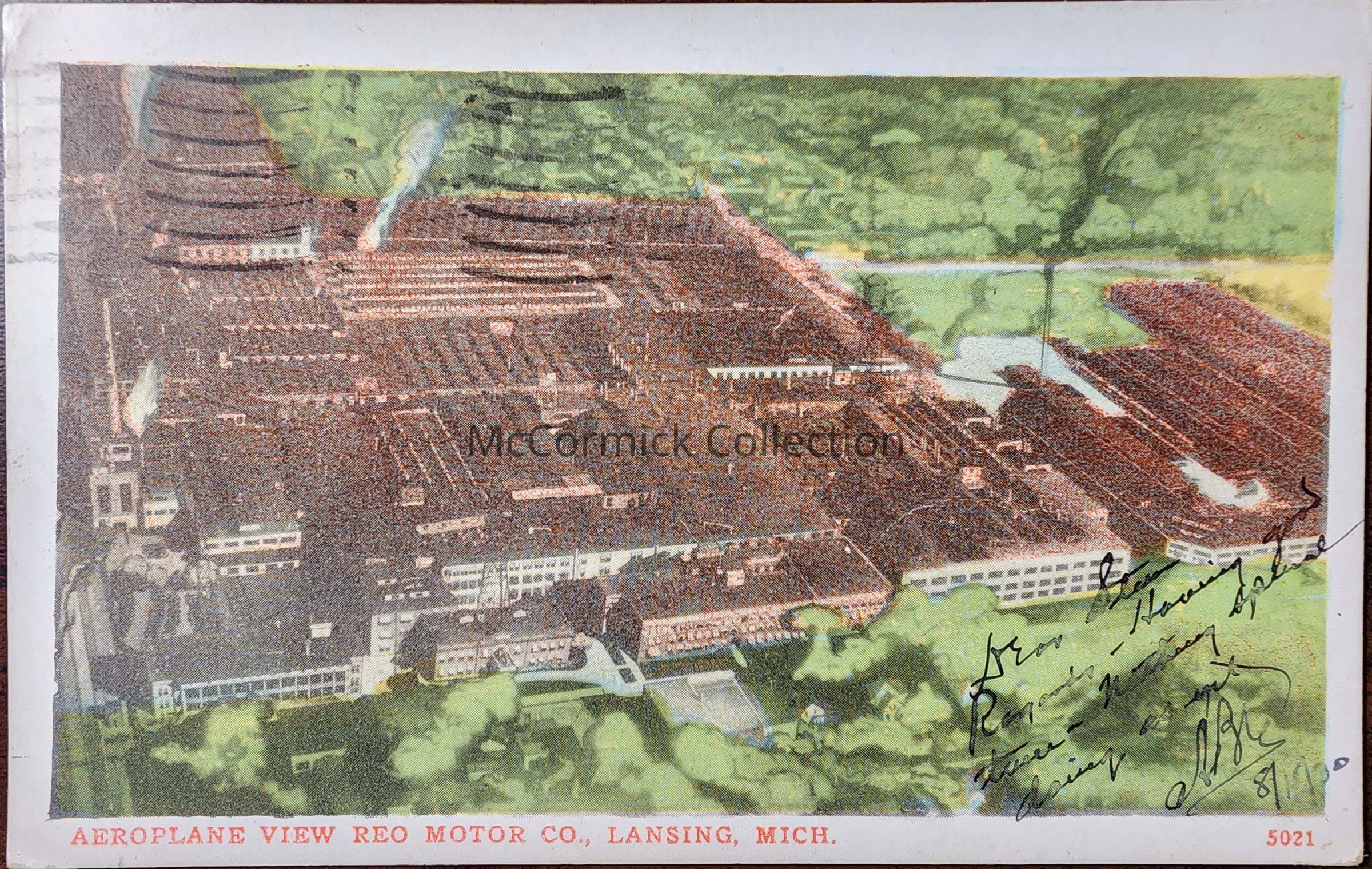 Aeroplane View REO Motor Co., Lansing, Mich. Postcard