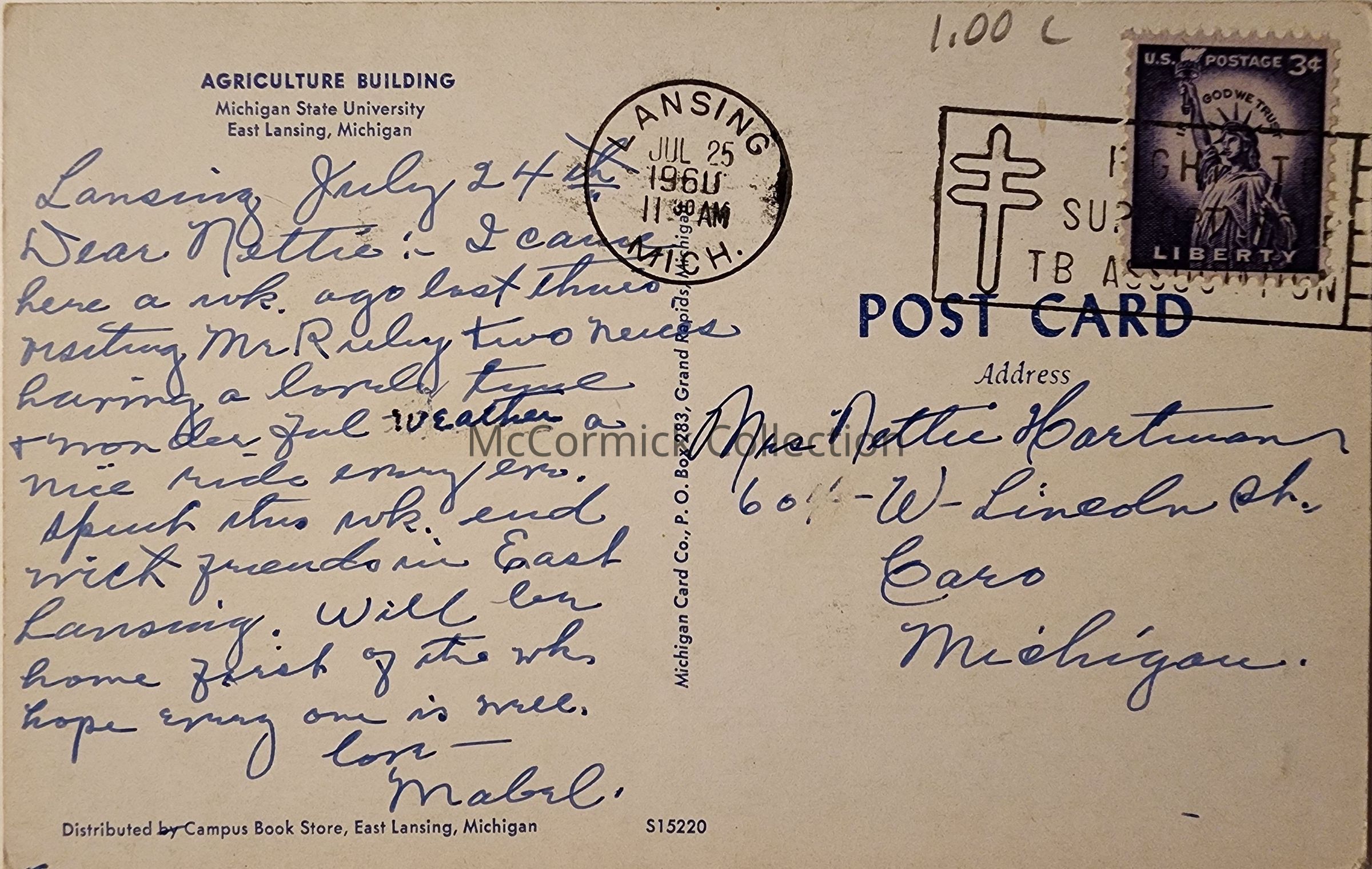 Postally used, Lansing 1960 postmark.