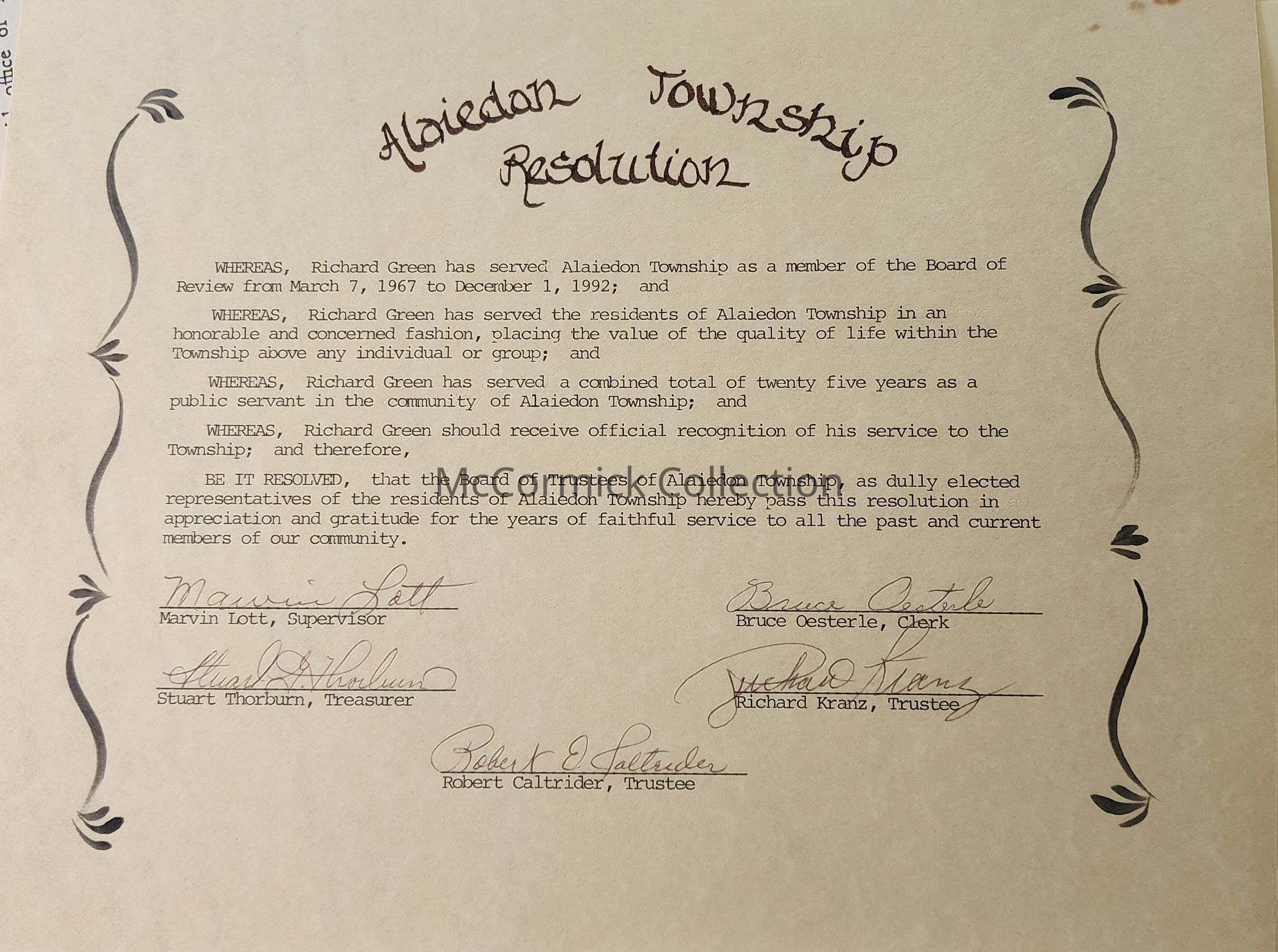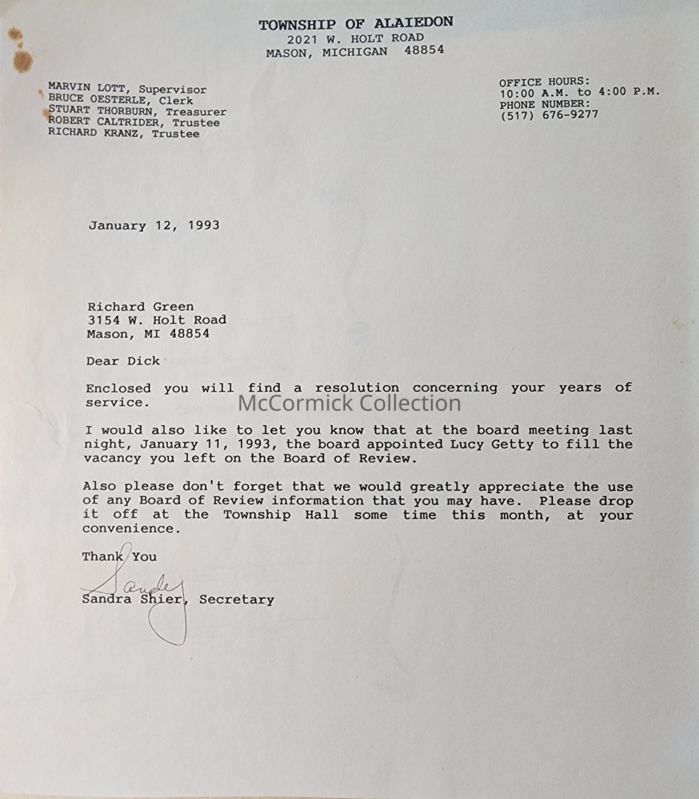 Alaiedon Township, Richard Green, Archive