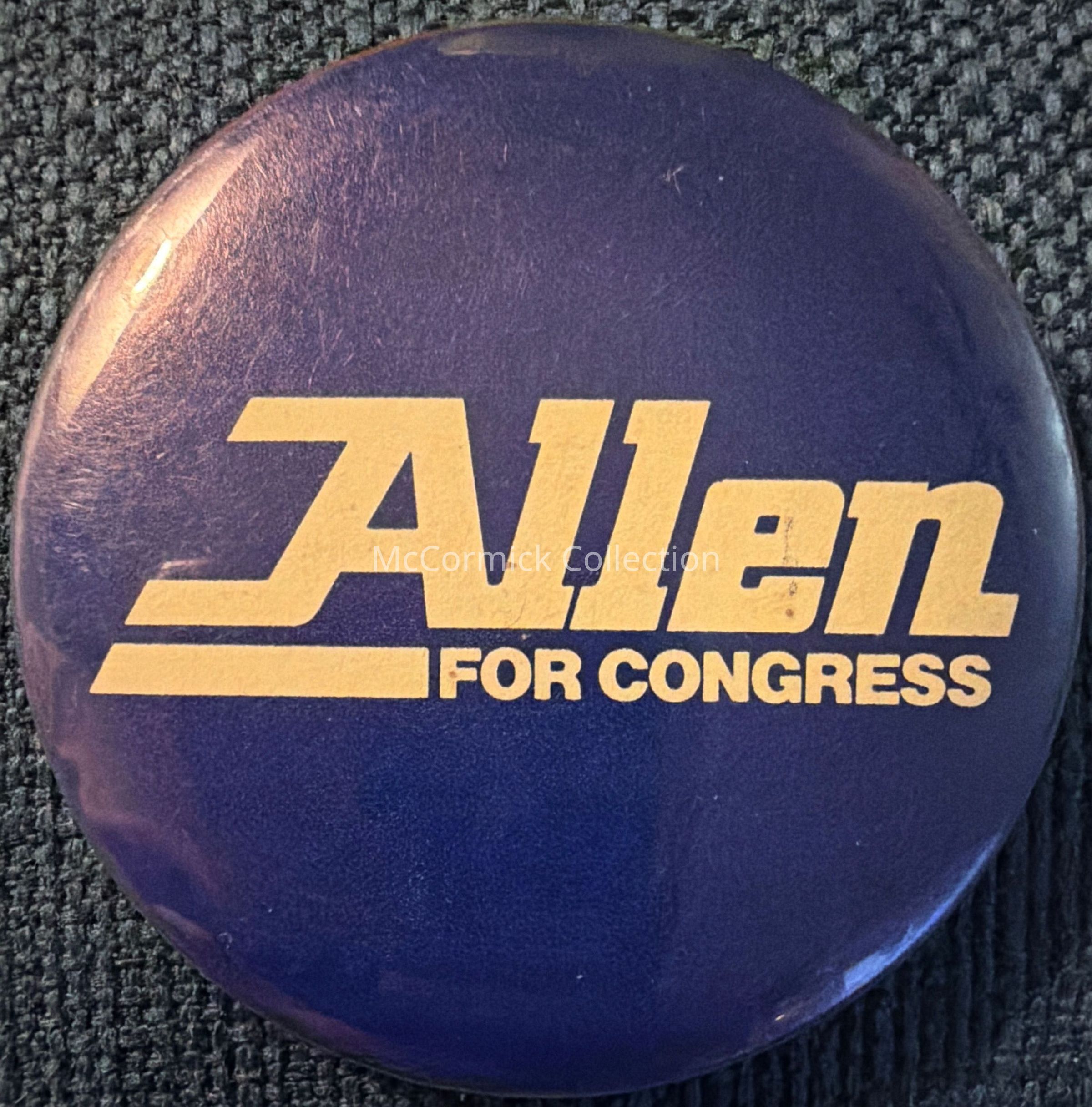 A 2.25” blue and white political button for Dick Allen for Congress, circa 1980 or 1990. Dick Allen was also the founder of Dalmac and a state legislator.