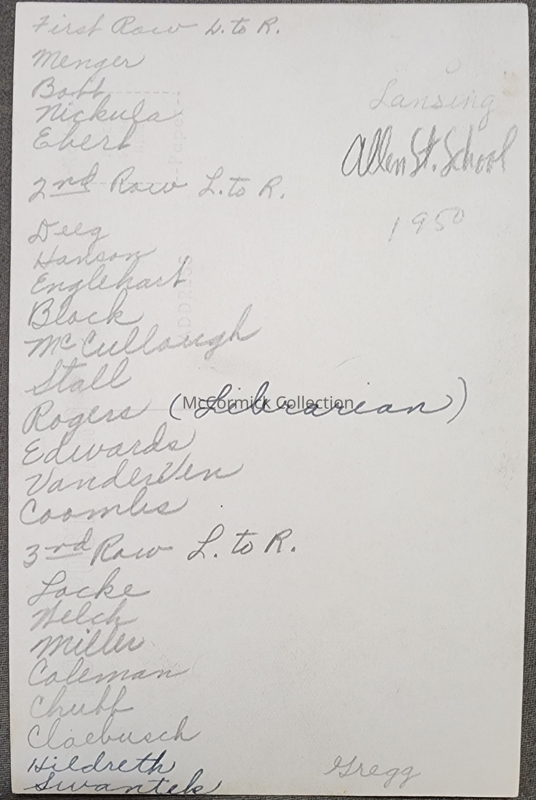 Allen Street School, 1950, Staff RPPC by Kowalski