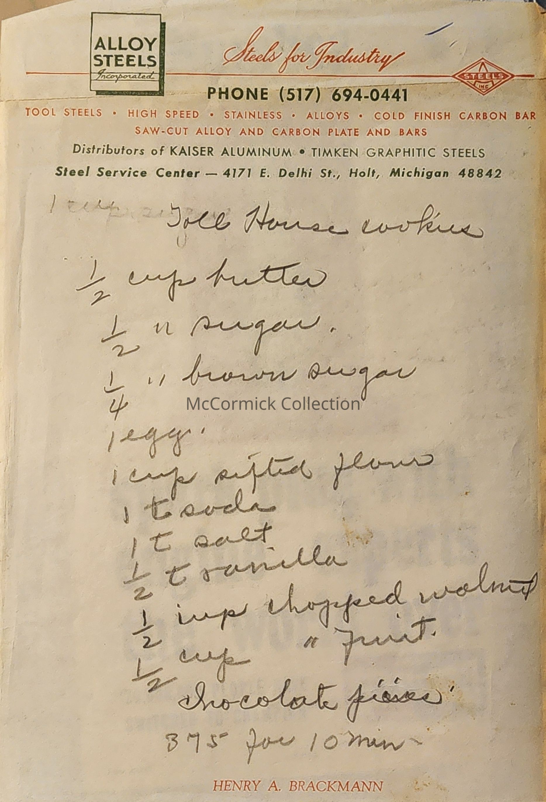 Alloy Steels Incorporated, Holt, Mich., Note Sheet
