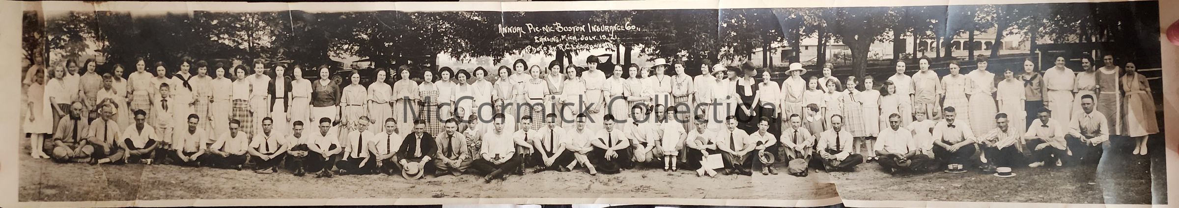 Panoramic photograph of the Annual Picnic of the Boston Insurance Company of Lansing, dated 1921.