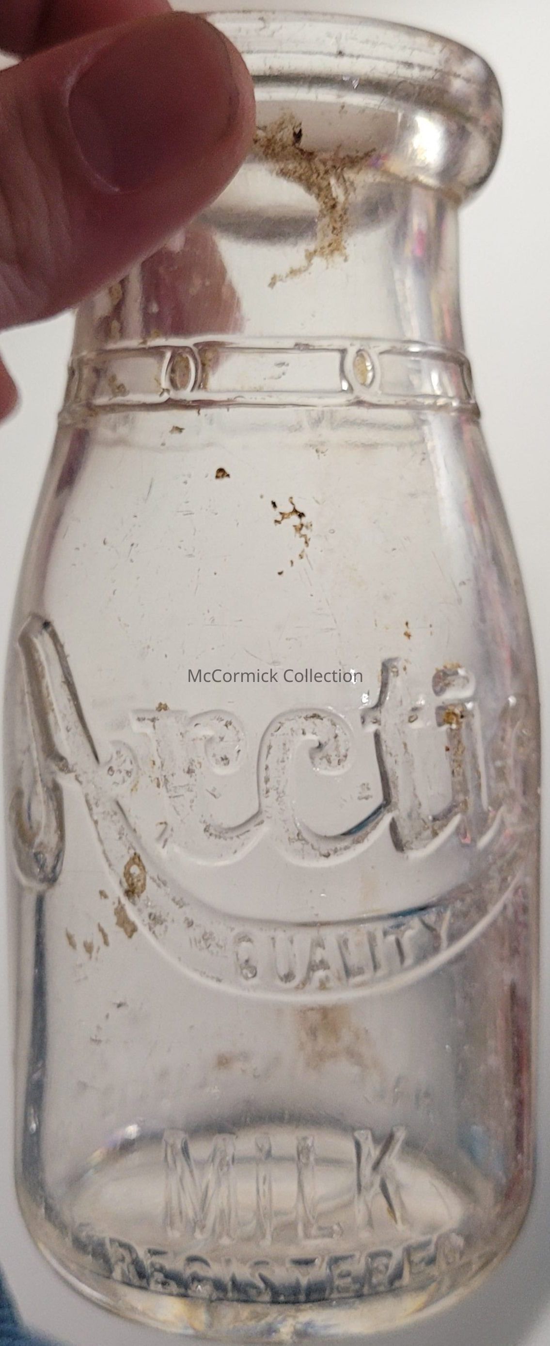 An embossed half pint bottle from the Arctic Dairy Co. of Lansing, Michigan, with full script logo.
