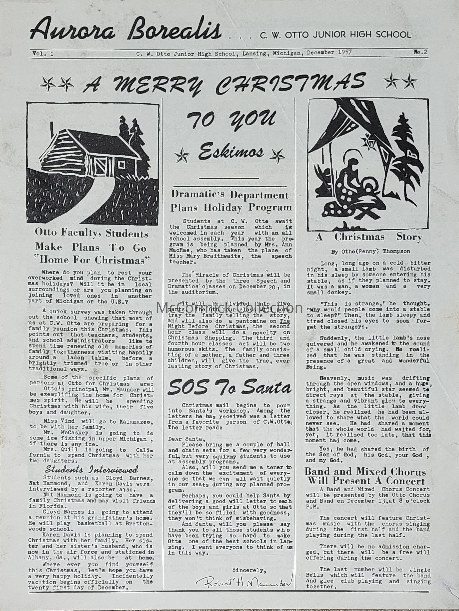 Otto Junior High School student newspaper, Vol. I, No. 2. Christmas topics.