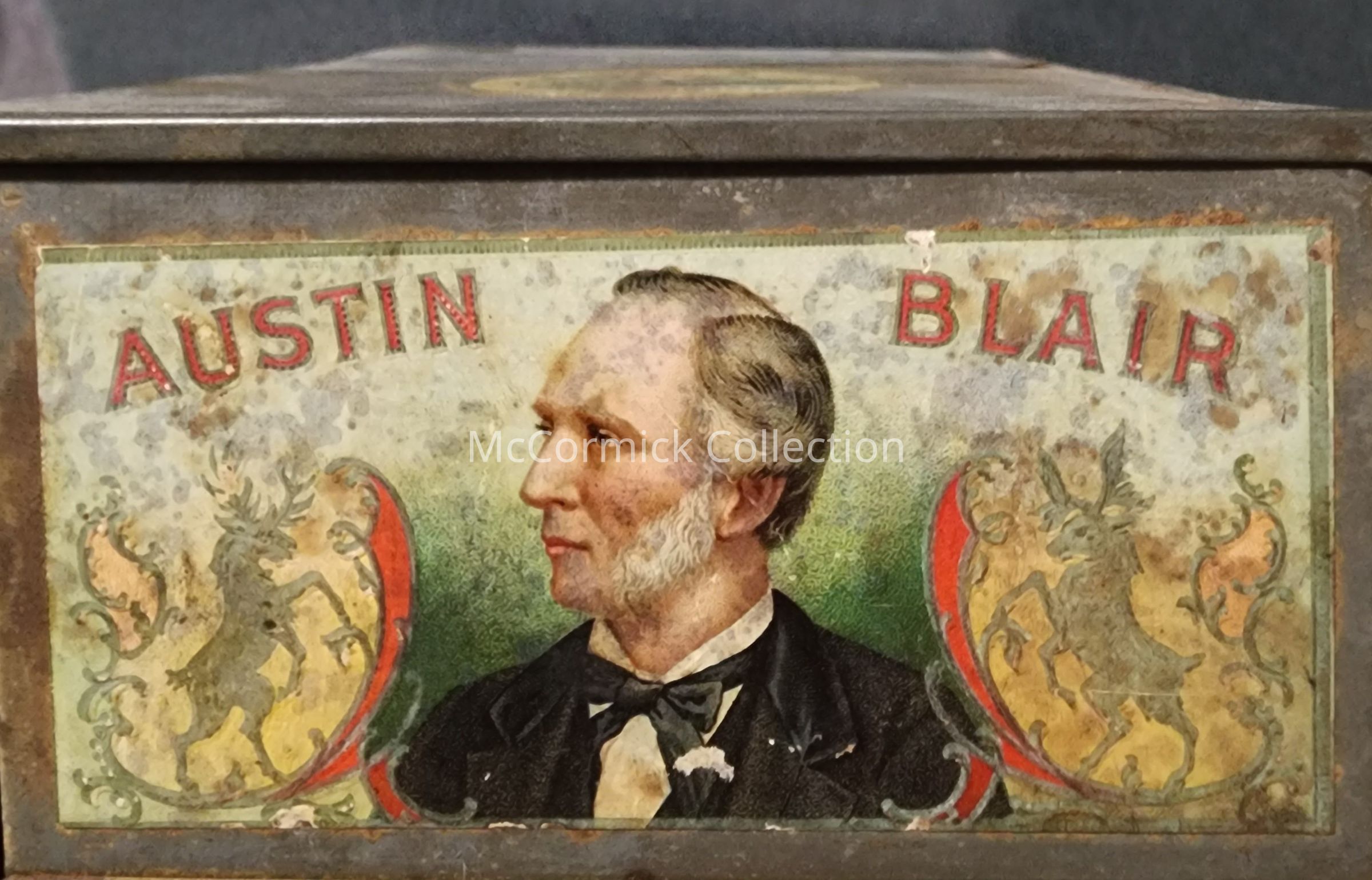 A metal cigar tin box for the Austin Blair brand cigars made by Alexander Gordon of Detroit.