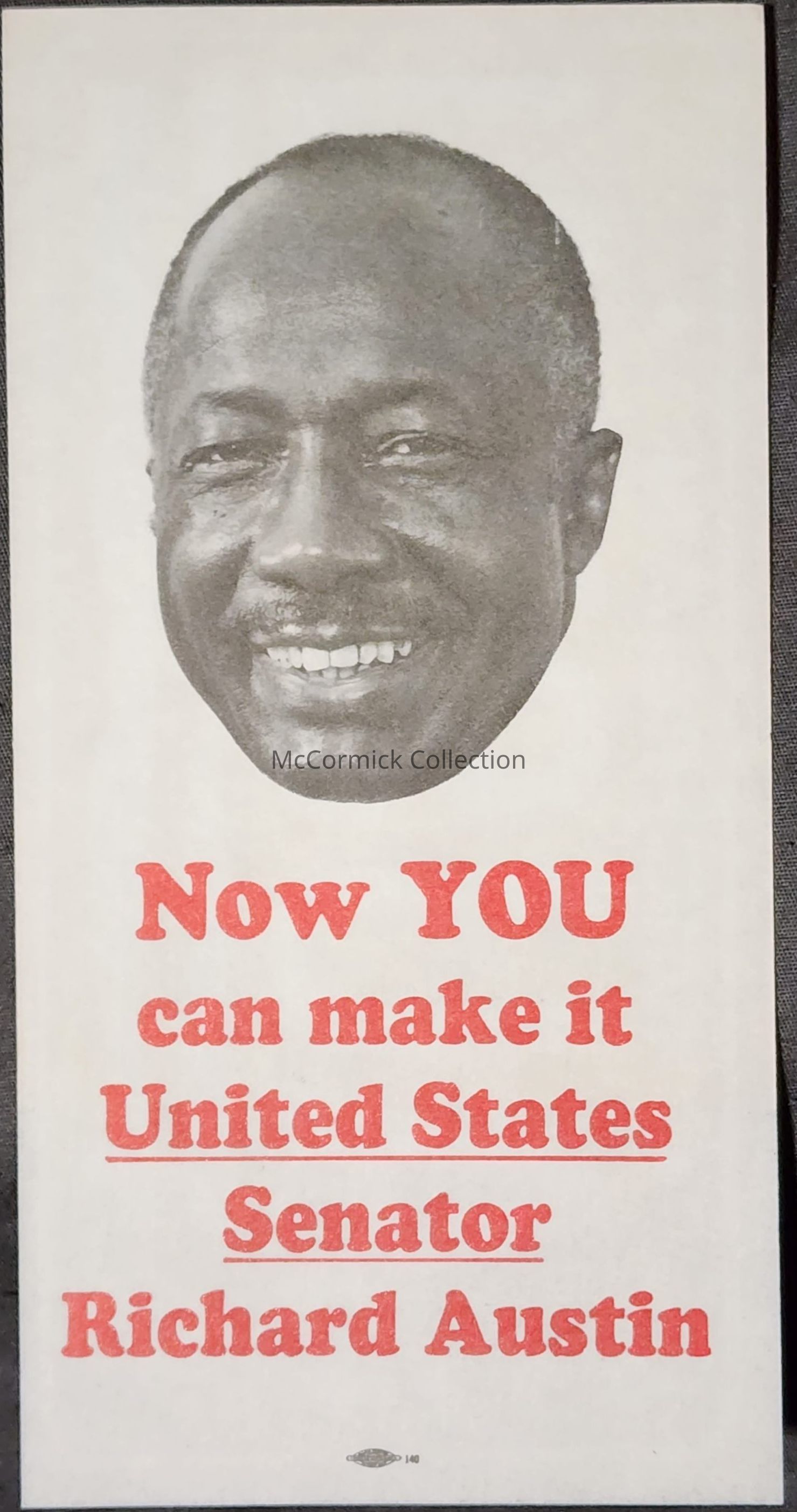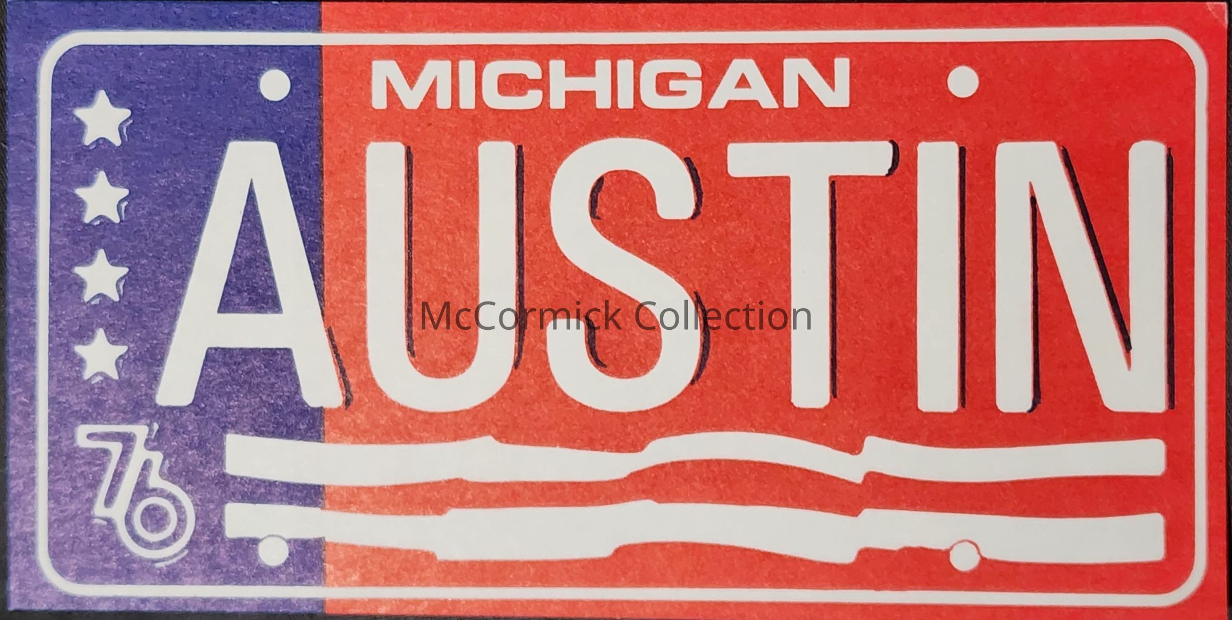A red, white, and blue license plate inspired political campaign flier for Richard H. Austin for United States Senator, circa 1976.