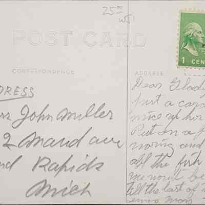 Real photo postcard of the Pantry in Lake, Michigan. Postmarked 1948. Addressed to Grand Rapids. Negative number is C3577.