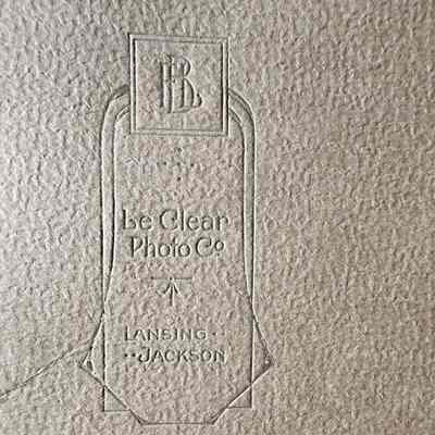 A portrait photograph of an unidentified woman by Lansing photographer LeClear, dated 1916. Mounted in a brown folder/frame. From Siebert Estate.