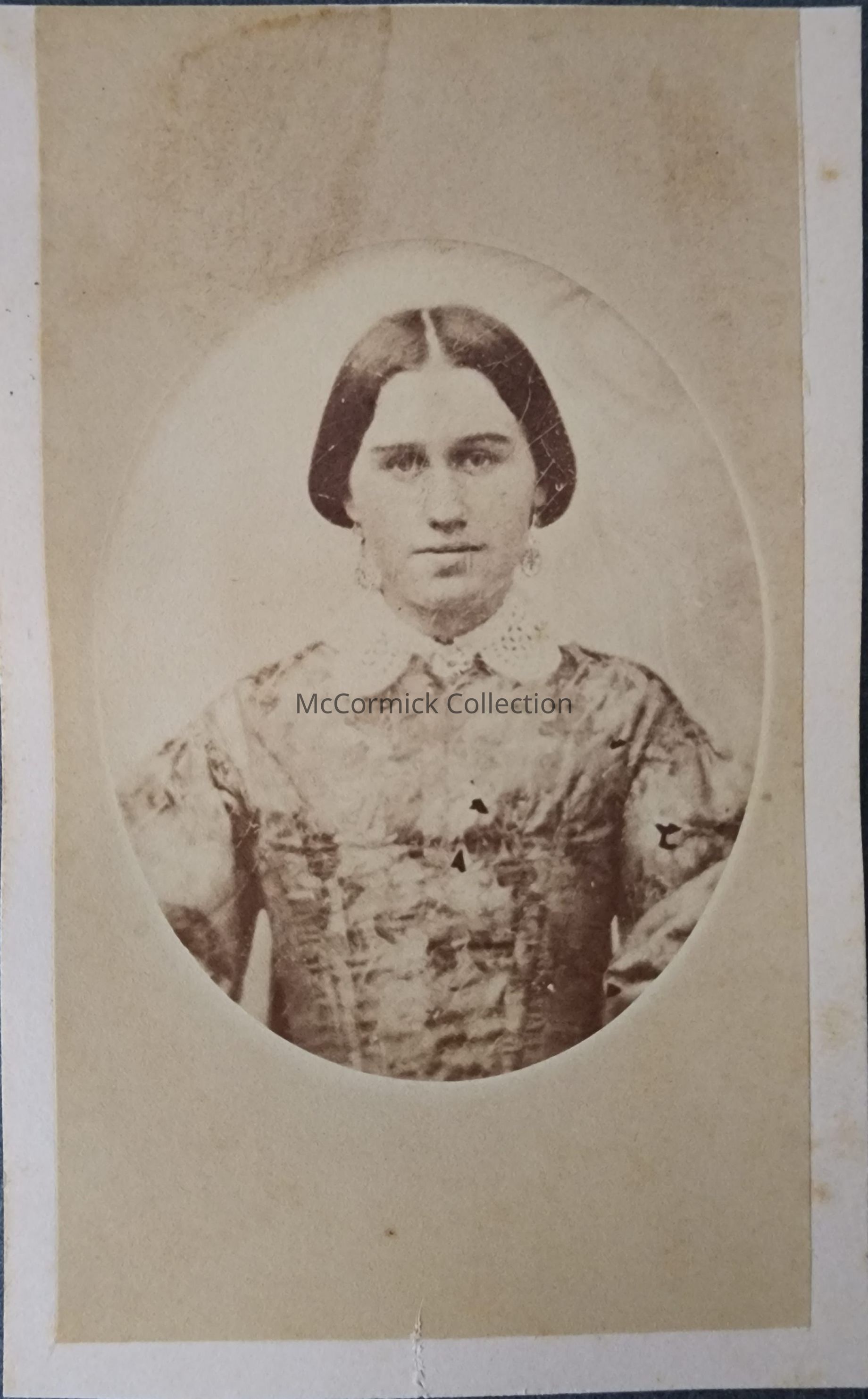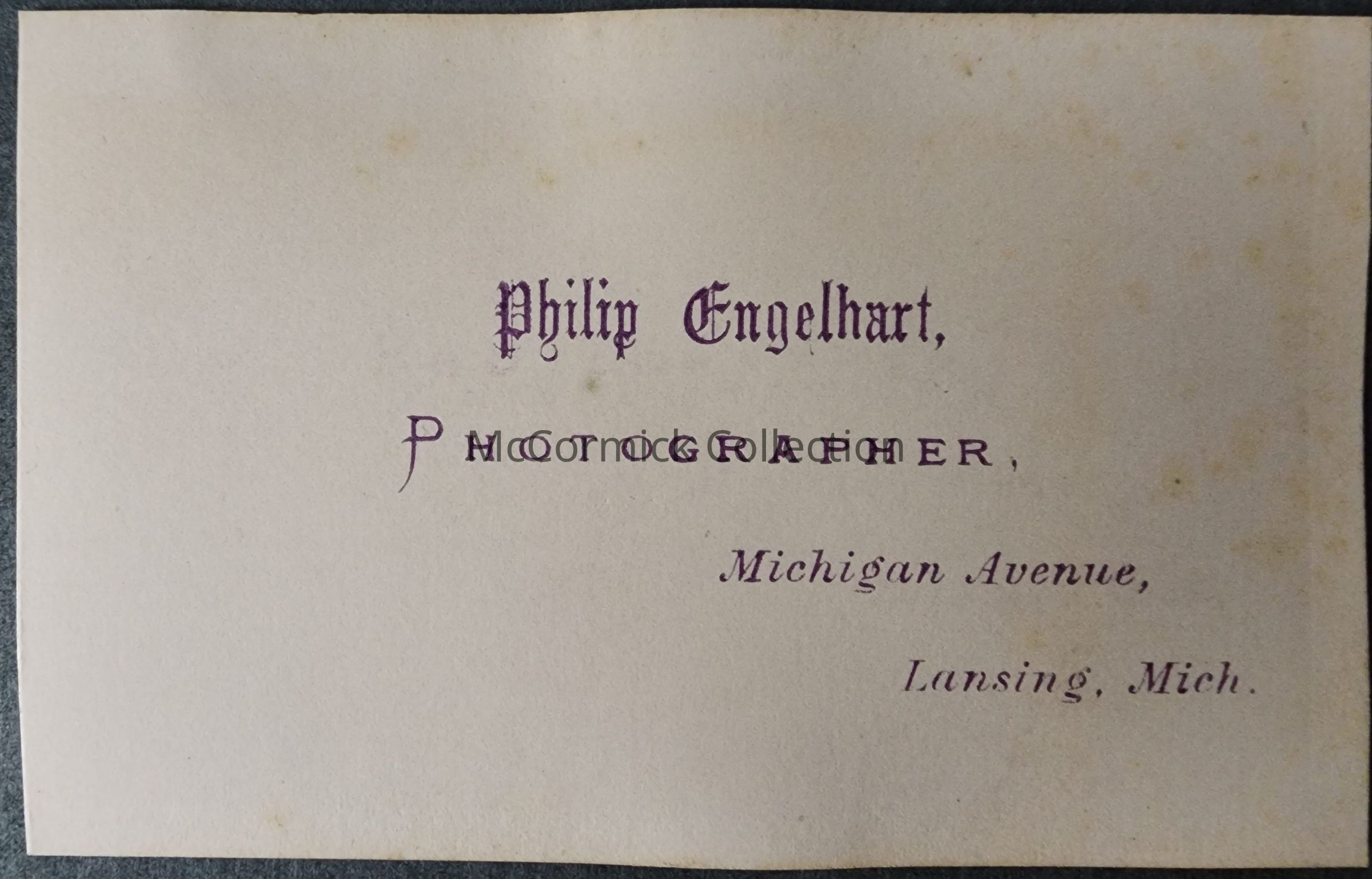 Carte de visite photograph of an unidentified woman by Lansing photographer Engelhart, circa 1859-1876.