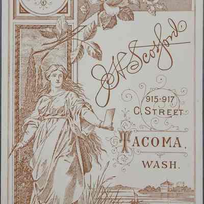 Cabinet card photograph of an unknown man by John Harvey Scotford, Lansing photographer here later working in Porland, OR. The mount lists both Portland and Tacoma, WA. Circa 1890s.Made/Created