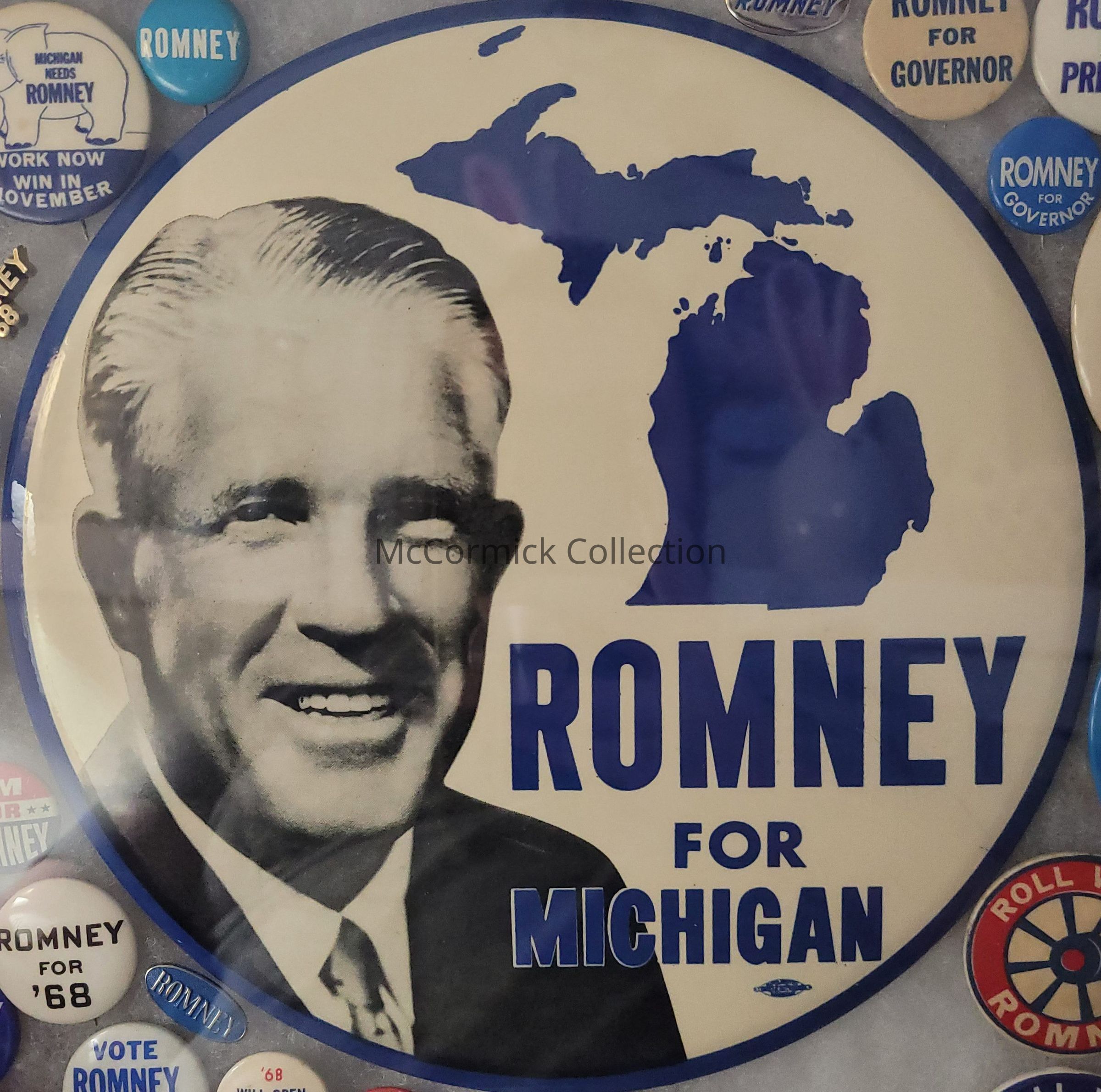 A large 9" blue and white political button for George Romney for Governor, circa 1960s.