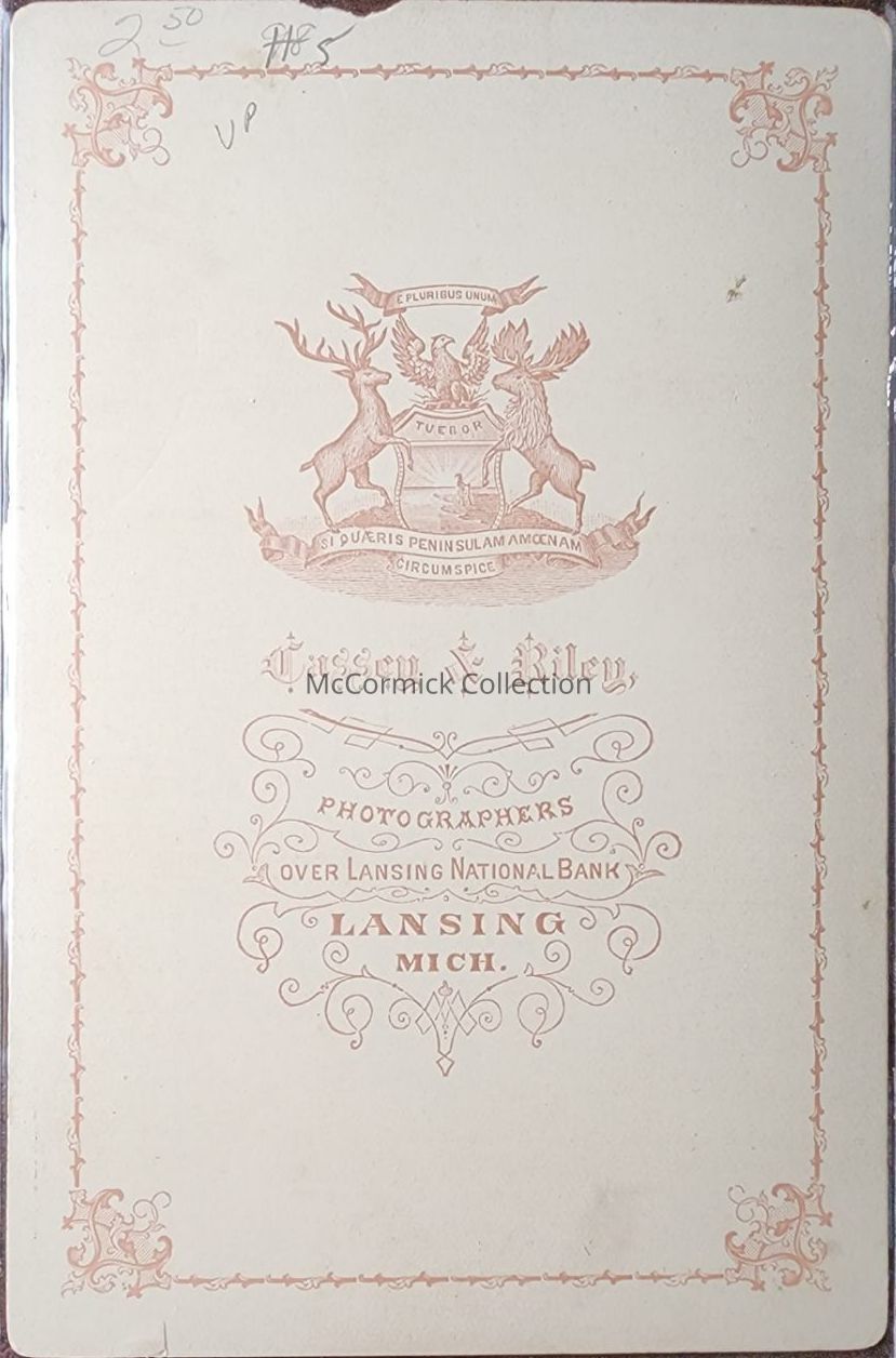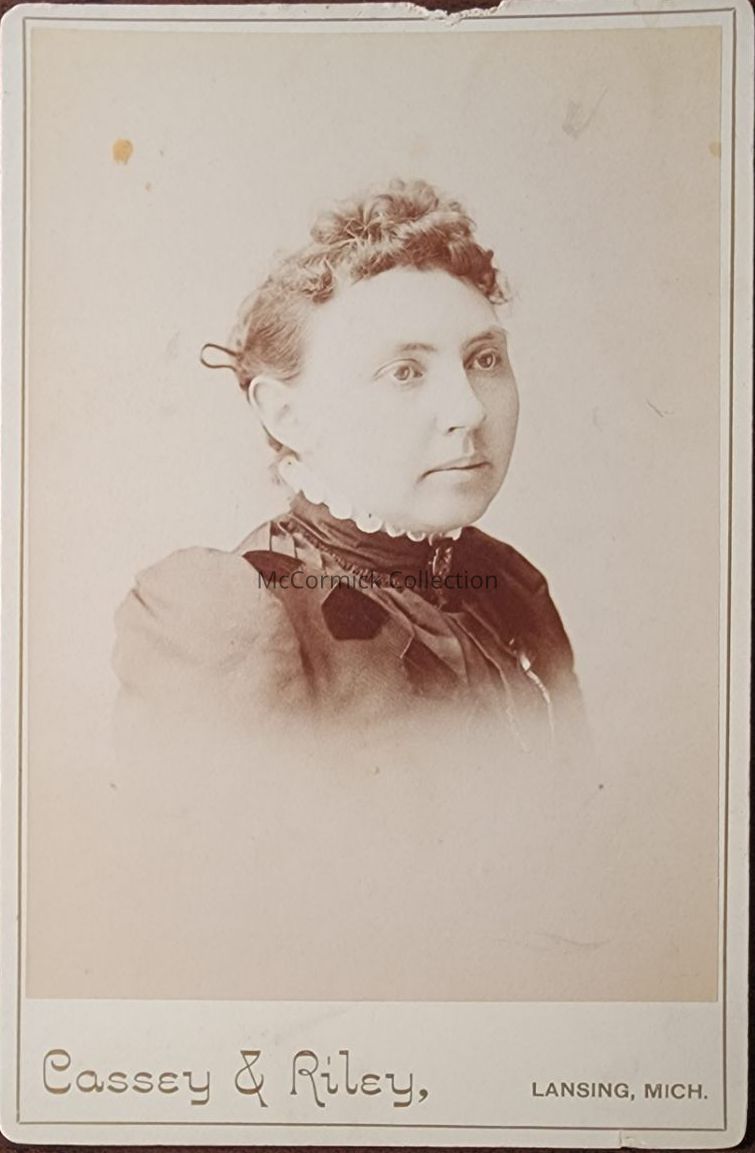 Cabinet card photograph of an unidentified woman by Lansing photographer Cassey and Riley.