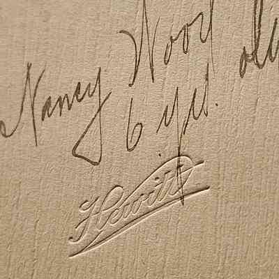 Card frame mounted photograph of 6 year old Nancy Wood by Lansing photographer Hewitt.