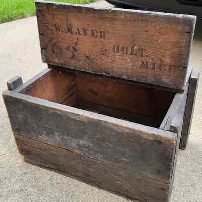 Crate from the Samuel W. Mayer general store in Holt, Michigan, circa 1900. Mayer was Holt Postmaster, state representative, and all around involved citizen.