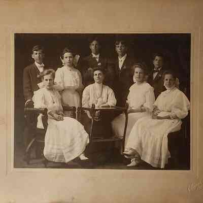 Oversize card mounted photograph of a school, class, or graduates by Lansing photographer Ellison, circa 1900-1910.